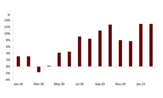 隨著供給端的調(diào)控,鋼材的供求基本面將更加趨于平衡。去年因疫情而大幅增長的鋼材庫存將獲得緩解。在需求端,我們預計全年鋼鐵實際消耗量增長約2%。隨著房地產(chǎn)進入完工周期與財政擴張小幅收窄,建筑相關(guān)的鋼材需求如螺紋鋼等將放緩。制造業(yè)將在出口與制造業(yè)投資復蘇的帶動下保持著自去年下半年以來的景氣度,拉動對板材的需求。