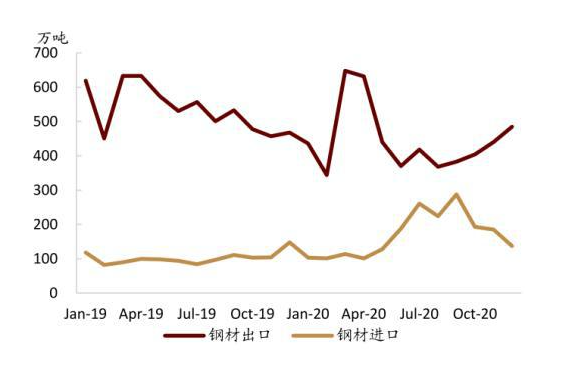在國內(nèi)需求仍有增長的情況下,為避免壓縮產(chǎn)量造成鋼材價格過熱而擠壓下游制造業(yè)利潤,可以配套降低鋼材出口,尤其是基礎(chǔ)型的鋼材。這樣,我們預計今年鋼材出口在去年低基數(shù)下可能增長有限,以保障國內(nèi)需求,在一定程度上平抑國內(nèi)鋼材價格波動。