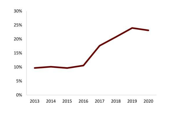 圖表: 中國廢鋼比過去幾年增長很快